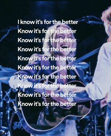 as the song goes on it sounds like shes saying “no, its for the better” like she has to physically restrain herself from this person to accept that life will go on.